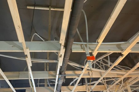 기존 매장의 천장이 노출 천장으로 스프링클러헤드가 상향식으로 되어 있었던 현장이었습니다.금회 반자를 석고보드로 설치하면서 ..