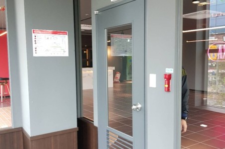 영업장은 2층이지만 마치 1층 같은 장소였습니다.주출입구는 불연재문으로 시공이 가능한 매장이었고, 비상구는 부속실..